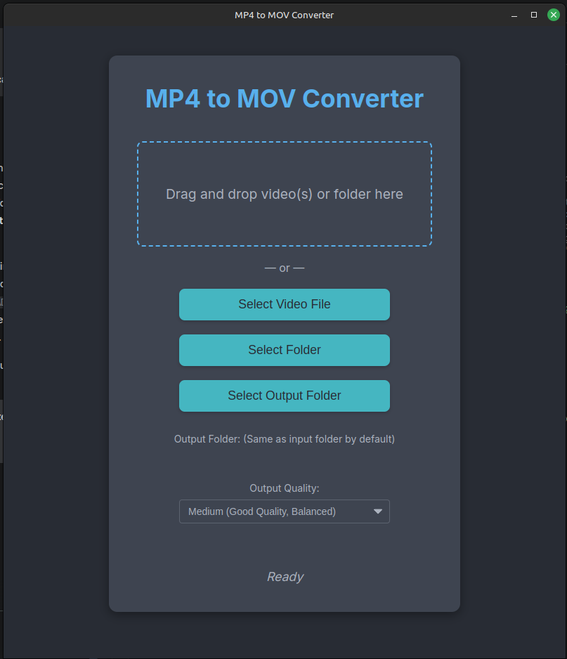- Converted files will be saved with `_high`, `_medium`, or `_low` suffix based on the selected quality (e.g., `my_video_high.mov`).